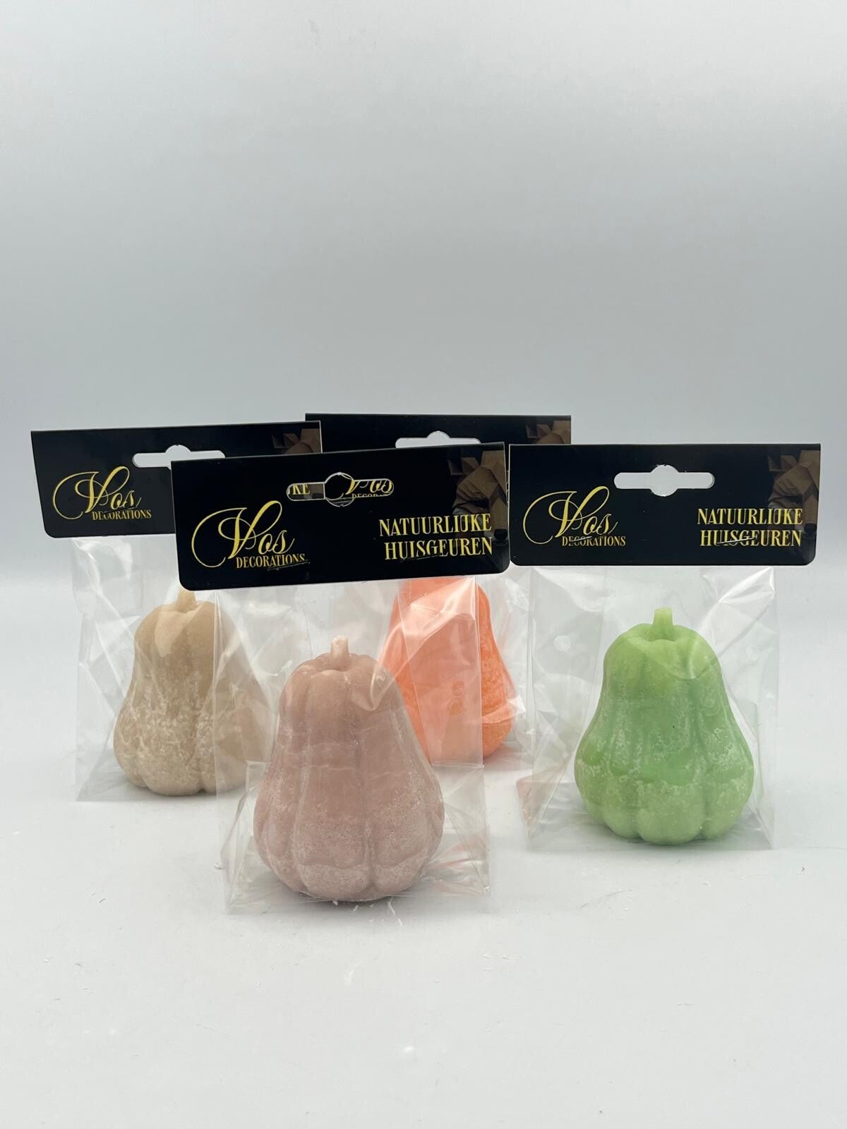 De peervormige pompoen is 7 cm hoog in 4 verschillende kleuren.